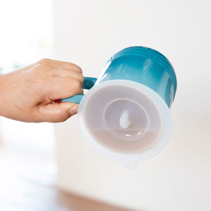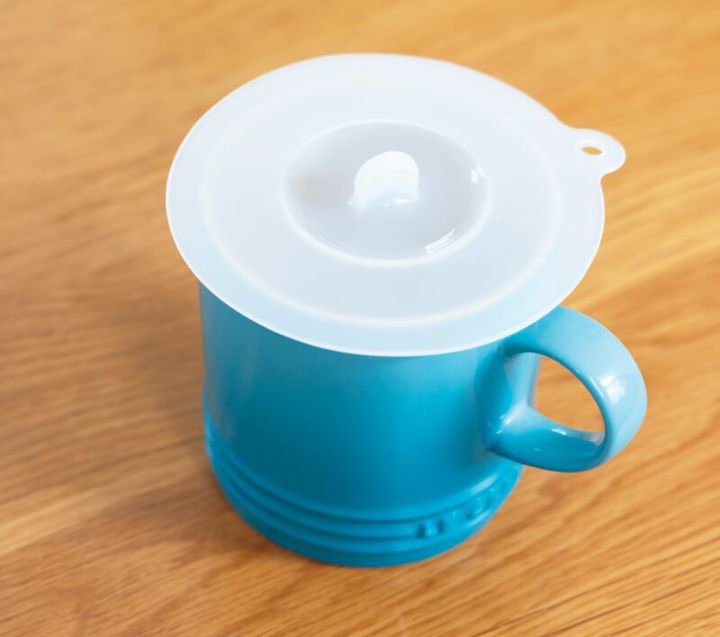 コップのふたにすれば傾けても中身がこぼれにくい。電子レンジ使用可。