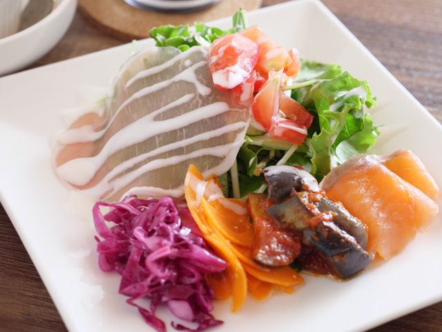 こちらが前菜。生ハムにキャロットラペ、サーモンなどの美麗盛り合わせは、彩りも豊かで食欲をそそります。 実際、食材の味がしっかりしていて、考え抜かれたドレッシングとの相性も良くって何ならおかわりがほしいぐらいだったんですよ!
