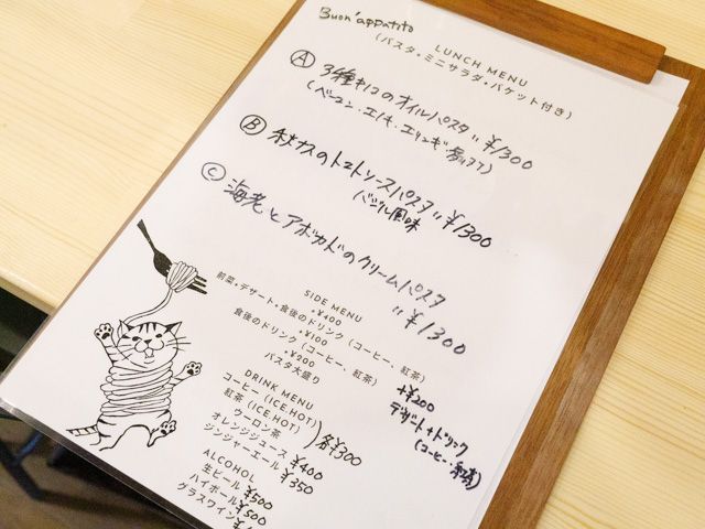 この日はランチタイムだったので、こんな感じのやっぱり猫さんがいるかわいいメニューでした。