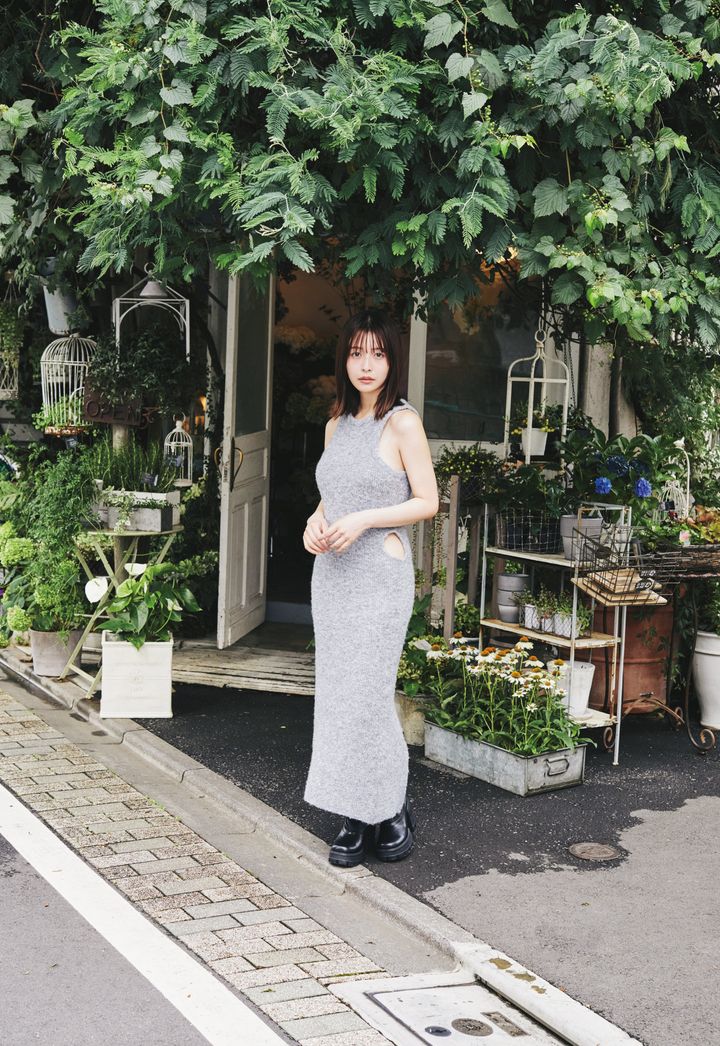 長濱ねる。ar10月号より ワンピース¥25,000/ロザリームーン(ロザリー) ブーツ¥15,900/チャールズ&キース(チャールズ&キース ジャパン)