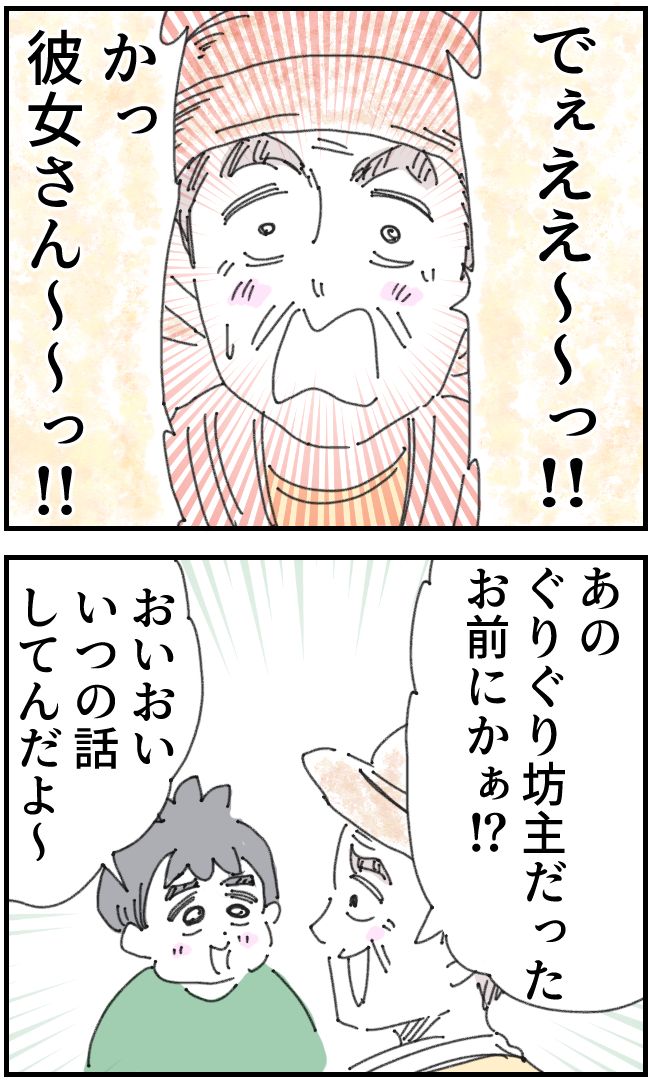 すると「でぇええ~~っ!!かっ、彼女さん~~っ!!」と驚くしばじぃさん。「あのぐりぐり坊主だったお前にかぁ!?」といちろうさんをからかいました。「おいおい、いつの話してんだよ~」と答えながらも、しばじぃさんとのやりとりを楽しむいちろうさん。