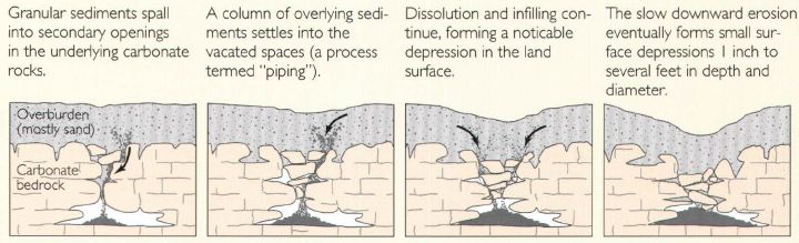 陥没孔とは、地下水による浸食、あるいは何らかの科学的な変化によって、地下にある岩石が崩壊し空洞が発生。