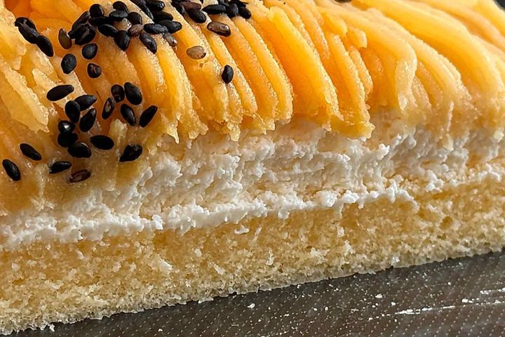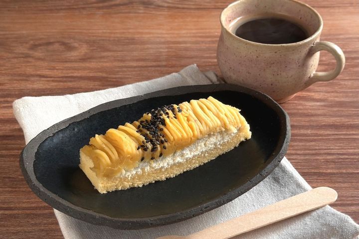 サツマイモとひと口に言っても、それぞれ個性豊か。一度に三種味わえるのは、お芋好きにはたまらない贅沢ですね。軽やかな甘さの生クリームと黒胡麻の香ばしさが、アクセントになっています。