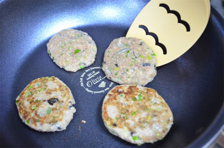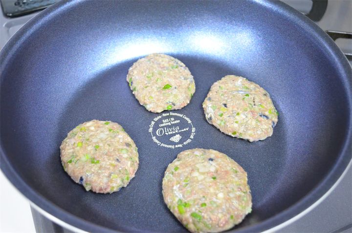 6.4を小判型に整えたら、熱したフライパンで焼く。