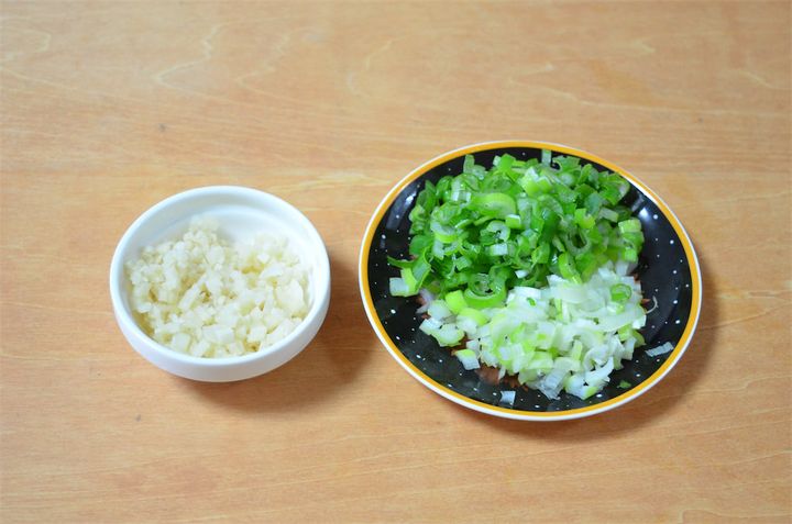 2ねぎとしょうがを粗みじん切りにする。