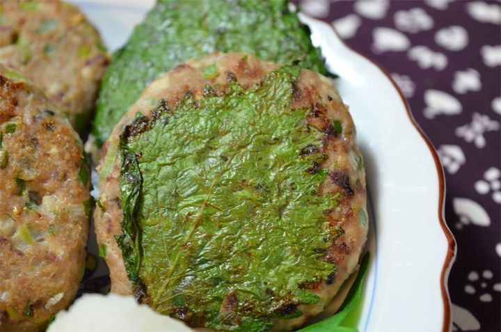 青じそは飾りにするだけでなく、ポーポー焼きのたねの両面に張り付けて焼くのもオススメです。
