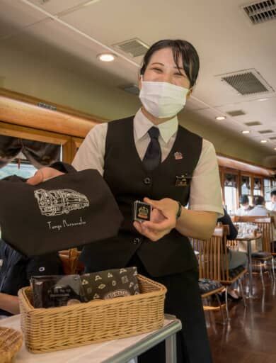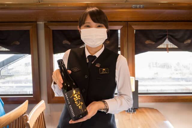レストラン列車【丹後くろまつ号】。地酒と魚料理を楽しむ「地肴コース」