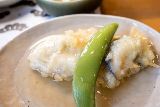 久美浜湾で育つ大きな牡蠣を使った揚げ出しは、濃厚な風味でとてもクリーミー。