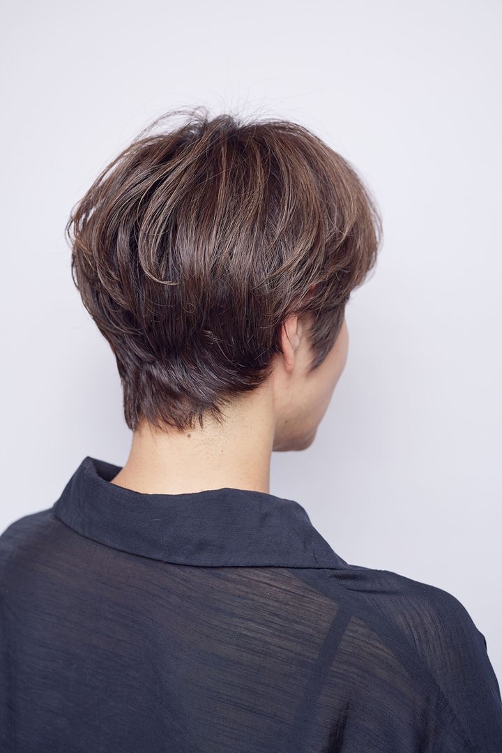 襟足を縦長にバランスをとり、もみあげの長さをステイ。ベリーショートを女性らしく楽しむ、このバランスに大人の余裕が溢れ出ます。毛先はワンカールのパーマをオン。