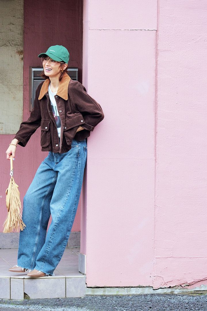 食欲の秋。食べ過ぎてしまって体型がちょっと気になる……そんなときはワイドフォルムで体型カバー。普通のデニムは散々履いてきたからこそ、ワイドパンツがトレンドの今、遊びの効いたデニムに挑戦してみては。コーデュロイ素材や小物でやんちゃスタイルに仕上げました。
