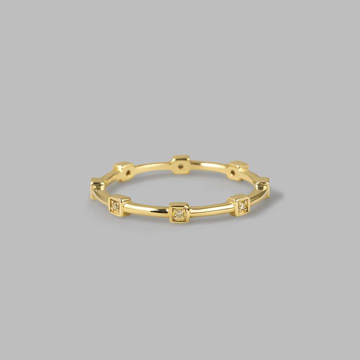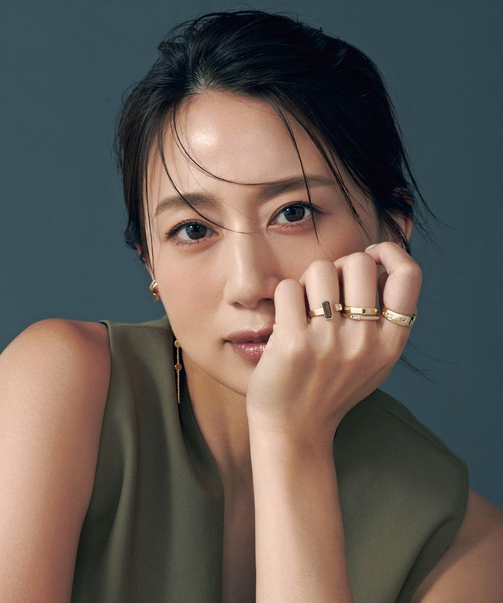 レイヤードしやすいジュエリーが揃うNEWライン。リングは同じ指に重ねても、隣り合わせに並べても、そしてその順序を変えても、また違った印象に。さまざまな楽しみ方ができるのもジュエリーコーデの醍醐味です。リング 薬指:(K10YG×スモーキークォーツ×ホワイトトパーズ)¥90,200中指:指元(K10YG×クリアクォーツ)¥68,200 指先(K10YG×スモーキークォーツ)¥68,200人差し指:(K10YG×クリアクォーツ)¥110,000ピアス(K10YG)¥15,400イヤカフ 上(K10YG×ブラウンダイヤモンド)¥33,000 下(SV〈K18YGコーティング〉×スモーキークォーツ)¥15,400(すべて4°C/エフ・ディ・シィ・プロダクツ)ベスト¥35,200(ハイク/ボウルズ)タンクトップ¥11,000(アルページュストーリー)