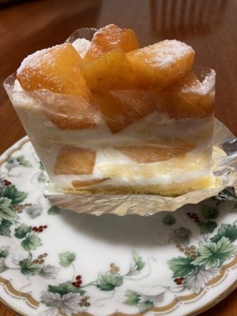 クッキー等だけでなく、店内正面には、タルトや、ムース、生ケーキも。 (但し、時期や日によってあるものが異なるのでこちらも事前にご確認を) 以前食べた甘夏のタルトは甘夏がジューシーでタルトはさくさく。 今回購入した白桃の生ケーキは奥の冷蔵庫にあり、店頭には並んでいないので、実はお会計後に既に購入していたタルトと交換してもらいました。