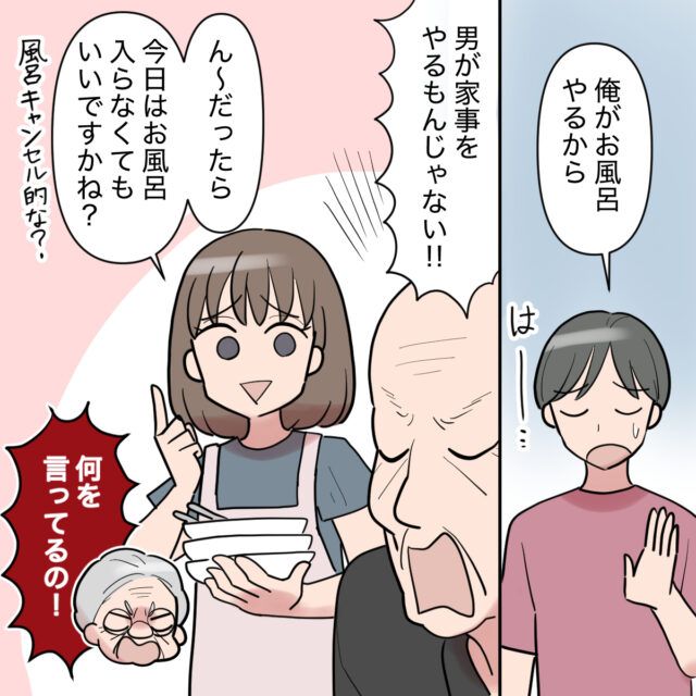 あっけらかんと答えるゆかりさんと怒る祖父母とのやり取りを見かねた夫ともやさんが「俺がお風呂やるから」と言うと、祖父はすかさず「男が家事をやるもんじゃない!!」とともやさんに言ったので、ゆかりさんは「ん~、だったら今日はお風呂入らなくてもいいですかね?」とサラリと言ったのでまた祖母の怒りを買いました。