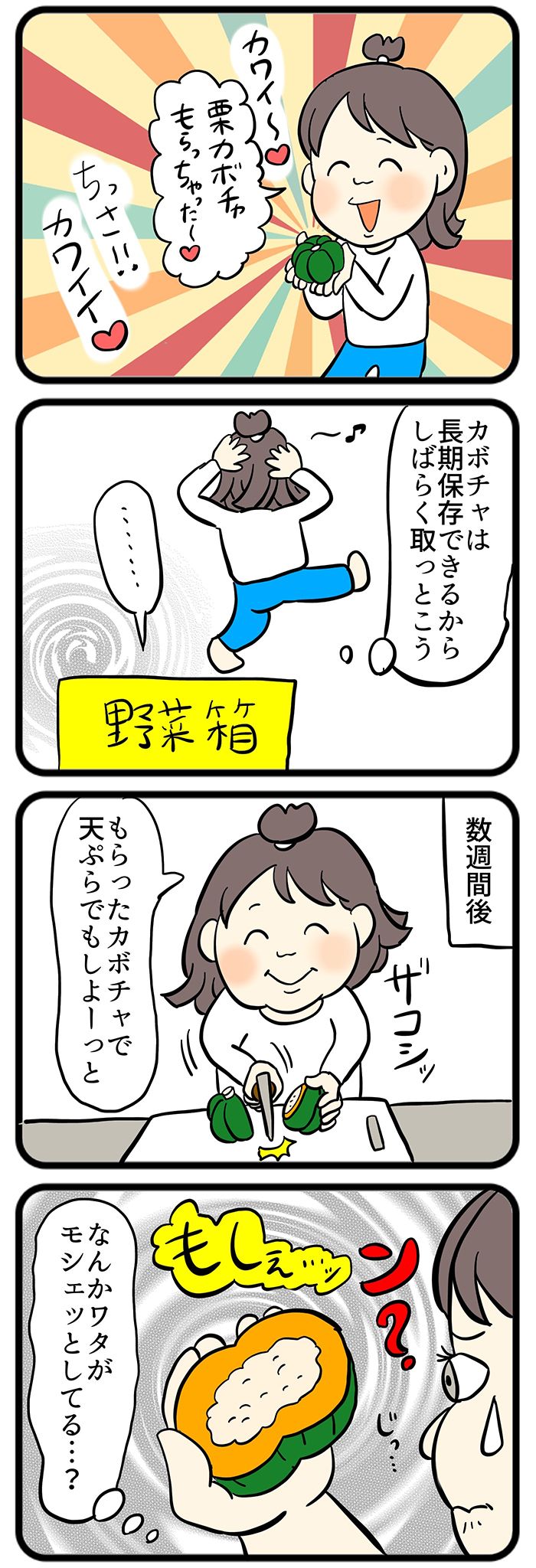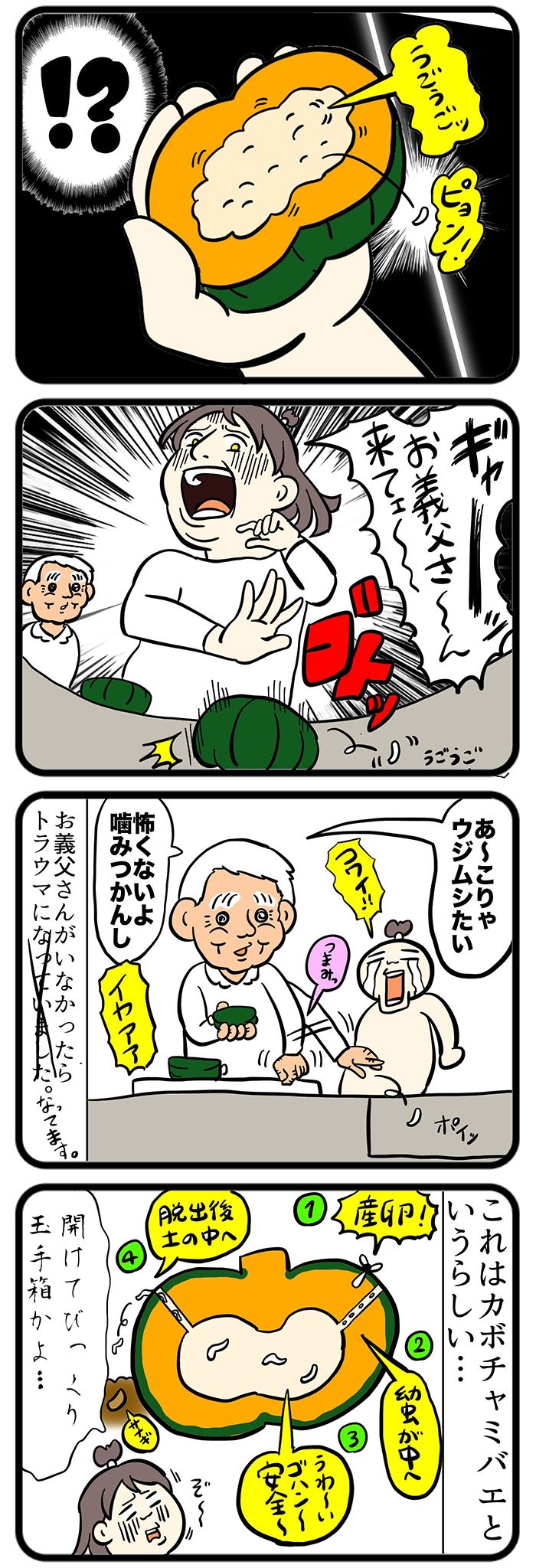 「ギャーッ!お義父さん来て~!」もらった栗カボチャを切ったら大変なことに。義父マキオさんは…【しぶしぶ同居したら義父が最高だった件・56】