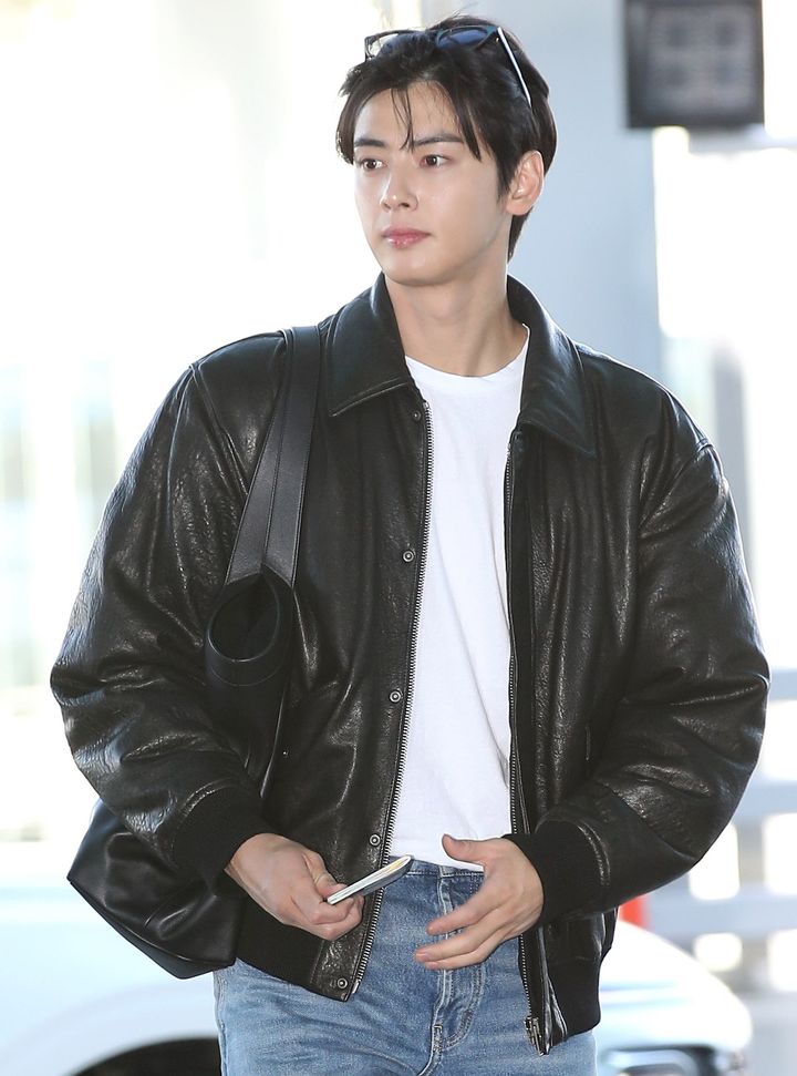 アウターを羽織ったチャ・ウヌの肩にもすっきりと収まるデザイン。