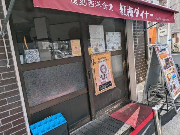 おぉ~、ここは噂に聞く、洋食店!「紅梅」の梅の字に梅のイラストが描かれています。大阪天満宮も近くにあることですし、せっかくなので、ここでランチをいただくことにします!