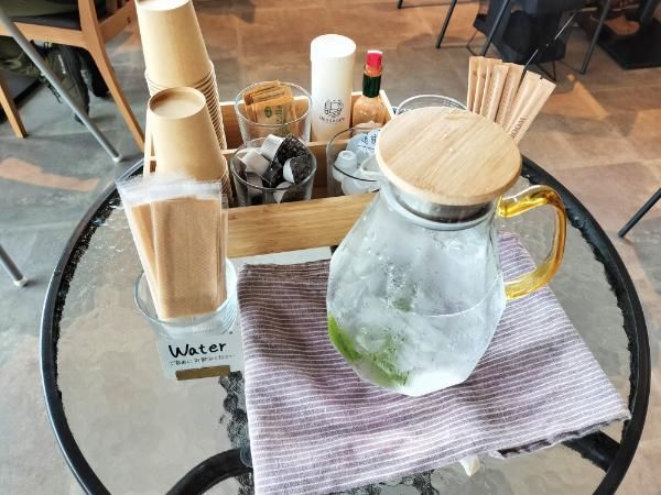 お水、お砂糖やミルクはセルフサービスです。