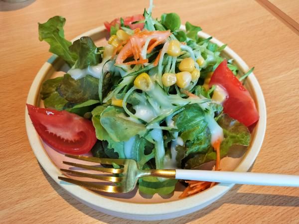 いただいてみると… レタスがふんわりやわらかいことに驚きました! ドレッシングもマッチしていてとても美味しいから、ずっと食べていられる(笑)