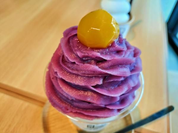 紅芋の影には生クリームとソフトクリームが隠れていて、3層の風味を順々に楽しめます。下部には、コーンフレークとオレオクッキーが入っていていました!