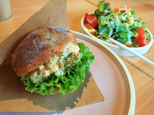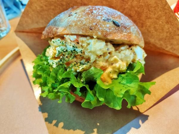 おお〜!! レタスの綺麗なウェーブが美しい…! 丸パン(ライ麦)に、めいっぱいサンドされたゆで卵のペーストもとってもキレイ。