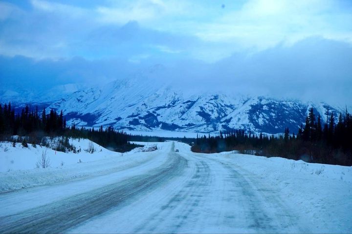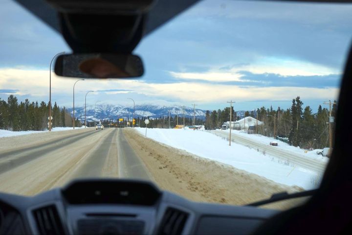 ホワイトホースの中心地で1泊した後は、車に乗ってアラスカハイウェイで3時間程度の場所に位置するクルアニ国立公園付近のロッジへ向かいます。