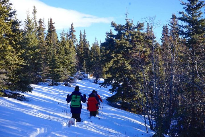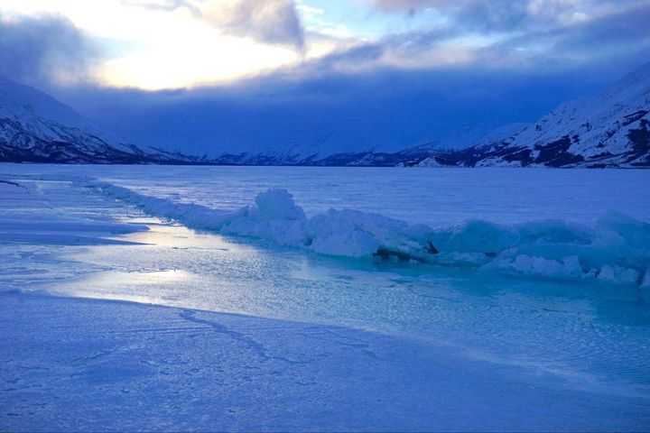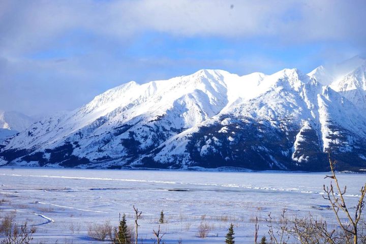 アラスカに近いここクルアニ国立公園では、凍った湖や人の手が加わってない山をスノーシューで散策することができます。