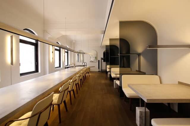 パリにあるオスマン様式のアパルトマンを思わせる建物は、昭和5年(1930年)に竣工した重厚な造りです。ここに2015年、アンリ・シャルパンティエのカフェ「銀座メゾン」がオープン。上質な店構えのモダンなお店です。