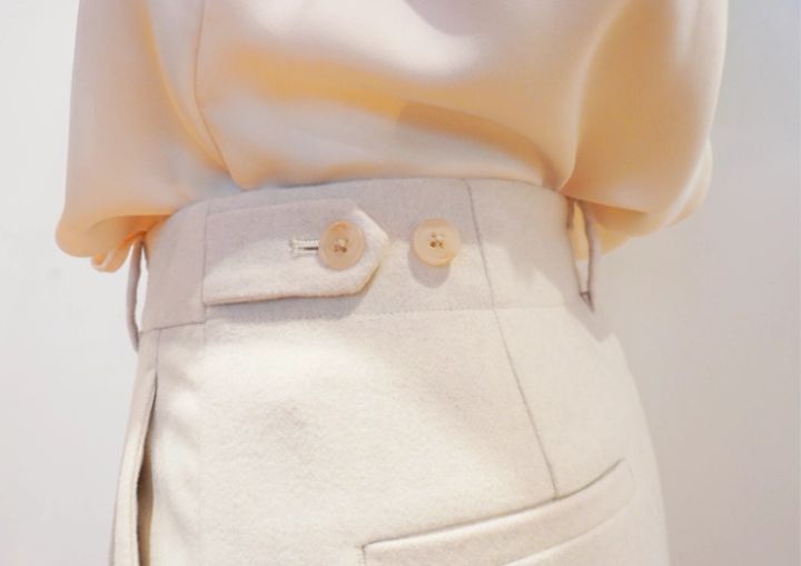 ウエストのタブでサイズ調整が可能なパンツは、機能性も抜群!平日はジャケットと合わせて真面目に、休日はトレンドの赤ニットなどと合わせてパリジェンヌ風の装いに挑戦したいです♡