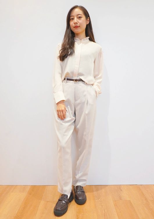 ・トップス:サテンフリルブラウス 30 NATURAL ¥3,990
