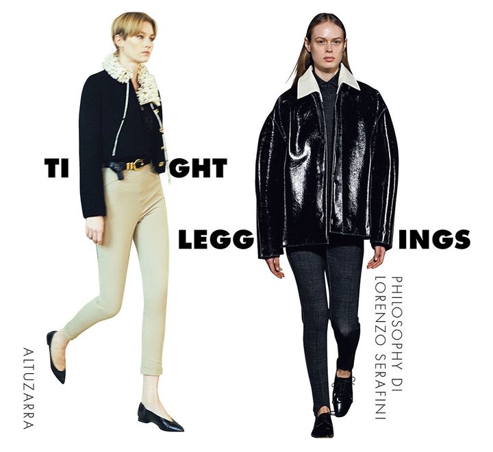 服にボリュームが出がちな季節に、あえてタイトなレギンスを合わせて気分転換。リラクシーな着心地で、スキニーほど緊張感なく、秋冬のモノトーンスタイルをスマートに仕上げられる。