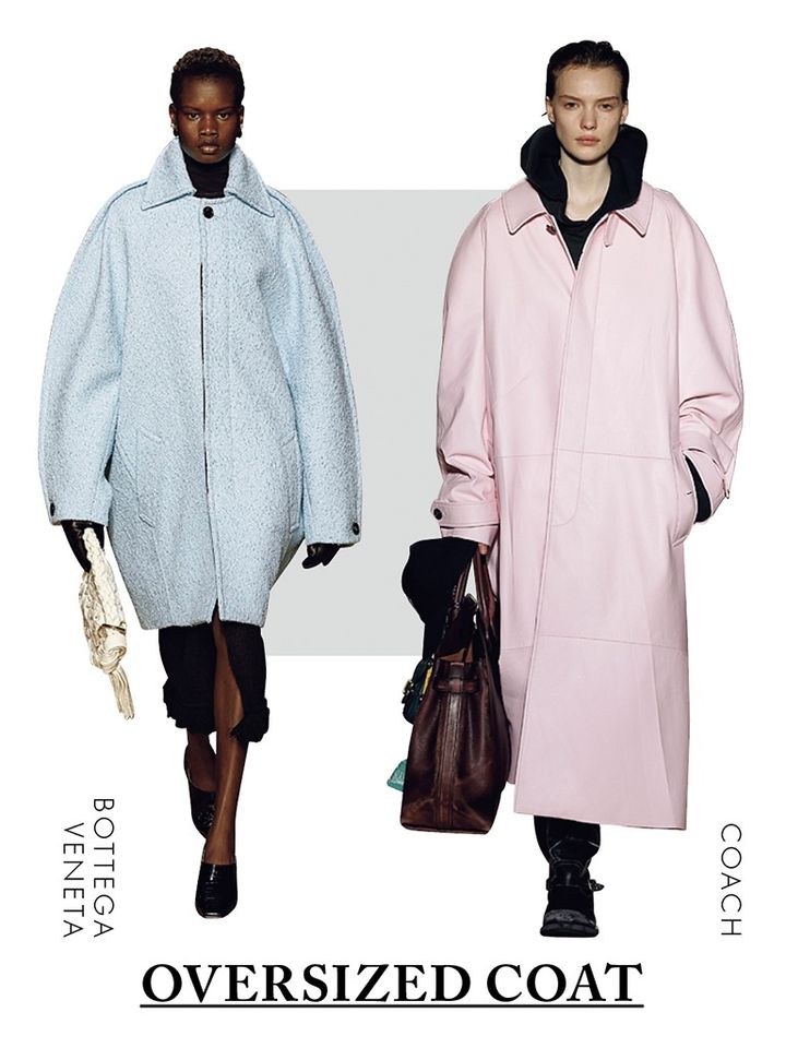 「今シーズンは色ものが豊作なイメージ。パステルピンクや水色などのかわいい色を大胆に使いながらも、ハンサムに落とし込むスタイリングはぜひマネしたいです。〈写真右〉のフーディやレザー小物でピンクを辛く着る意外性に惹かれました。コートのハリ感も相まって、いっそうハンサムに」(樋口さん)