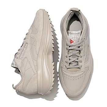 ベージュ厚底スニーカー/Reebok どんな装いにも合わせやすいグレージュ。雨も雪の日も滑りにくいギザギザのシャークソールと、長時間歩いても疲れにくいクッション性に優れた厚みのあるソール。
