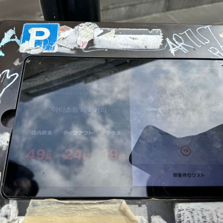 お店の前にイートイン(店内orテラス席選択可)とテイクアウト(店内で購入のみ)の予約する機械があるのでそこに必要項目記載するとメールで順番待ちができちゃいます!