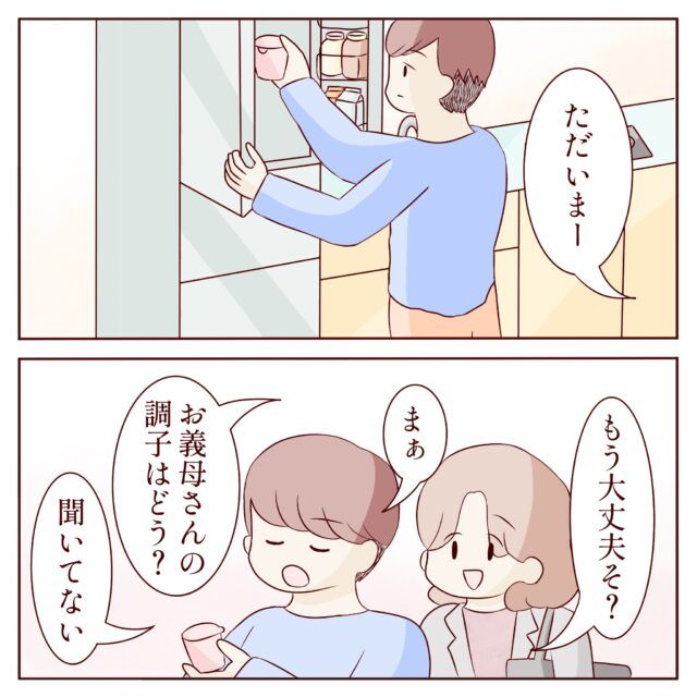 続けて「お義母さんの調子はどう?」と聞くと「聞いてない」と拗ねた様子で言いました。