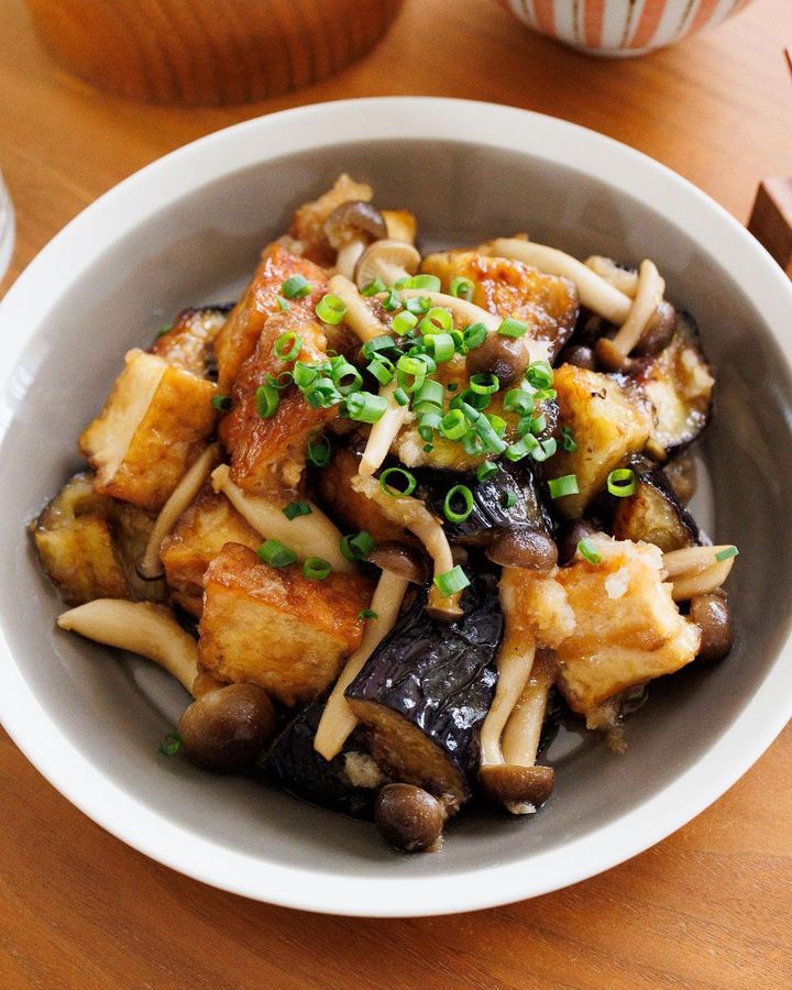 秋は秋なすやきのこもおいしい季節なので、ぜひ使いたいところ。厚揚げと一緒にみぞれ煮にするとボリュームが出て、お肉がなくても大満足の一品になります。