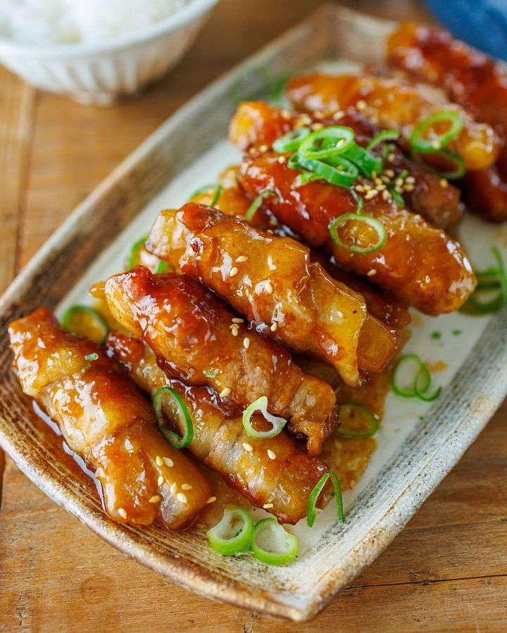 作り方は、棒状に切った大根に豚バラ薄切り肉を巻き付け、全体に焼き色がつくまで転がしながら焼いた後、調味料を加えて蒸し焼きにするだけです。