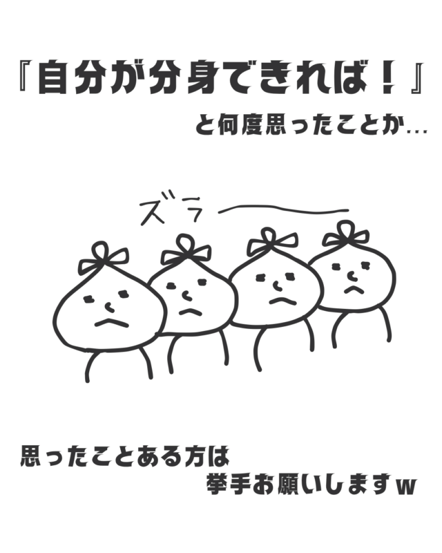 はいっ!はいはいっ!!分身の術、使えればと何度思ったことか!