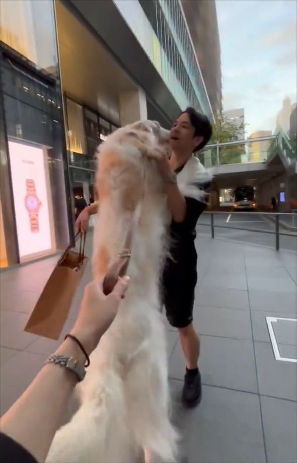 デートの待ち合わせしているみたい!ソワソワしているボルゾイが待つのは誰?「抱きつく前にストレッチ」「熱烈キス!欧米か!?」
