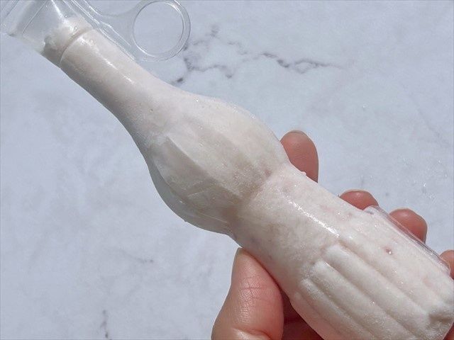 淡いピンク色のアイスが入った容器を、パキッと割っていただきます♪