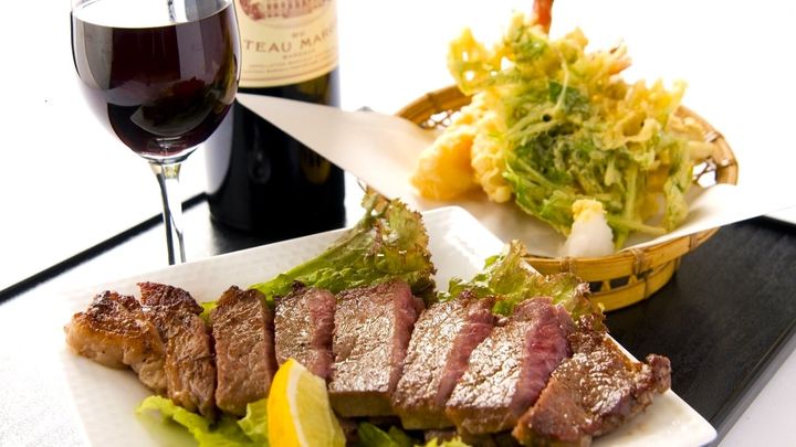 レストランの1番人気は名物『パワーランチ』。ステーキと天ぷらという大胆な組合せでボリューム満点