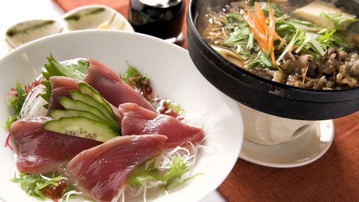 『カツオの刺身とすき焼き』も大満足の内容だ