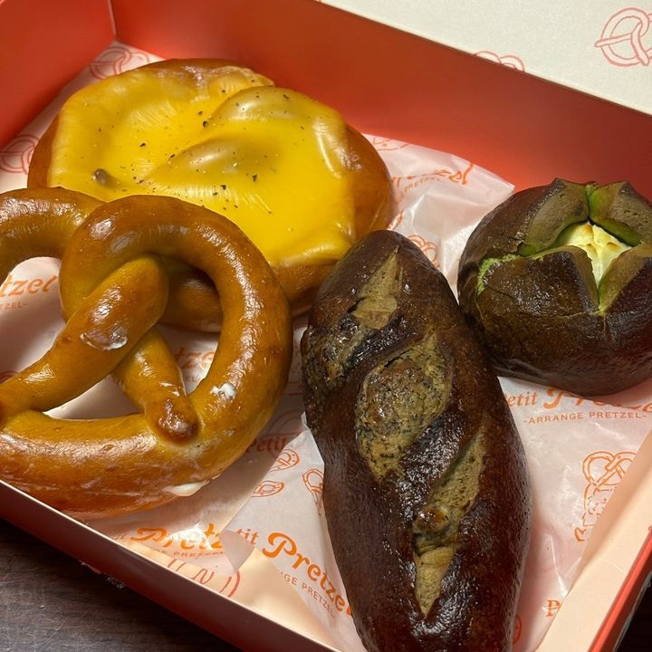 出典:MORE4個以上でオリジナルボックスに!写真映え必須のボックスの中には「バタープレッツェル」「チーズプレッツェル」「抹茶クリームチーズあんこ」「アールグレイ」をチョイス🥖温め直すと焼きたてのようなもちもち感が味わえますよ☁️