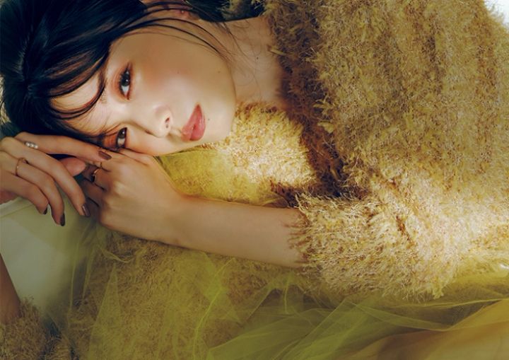 アンサンブルニット¥29,700/COEL スカート¥24,970/ネイヴ(オンワード樫山) イヤリング¥3,300/フィーユ(ロードス) リング[右手]¥37,400/モニス、リング[左手人さし指]¥53,900/アナプノエ(ともにフォーティーン ショールーム) リング[左手中指]¥149,600/マリハ