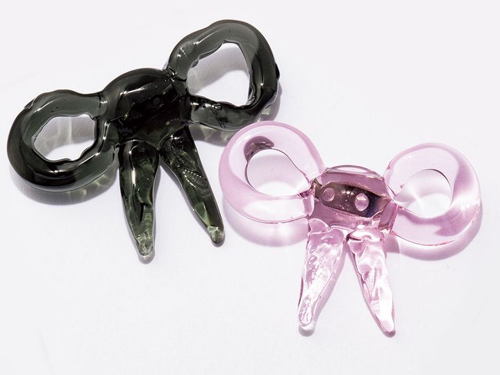今どき感のあるフォルムのプチリボン。まるでキャンディのようなクリアなカラーでHAPPY感をON。ブローチ各¥25,300(レヴェンス/RHC ロンハーマン)