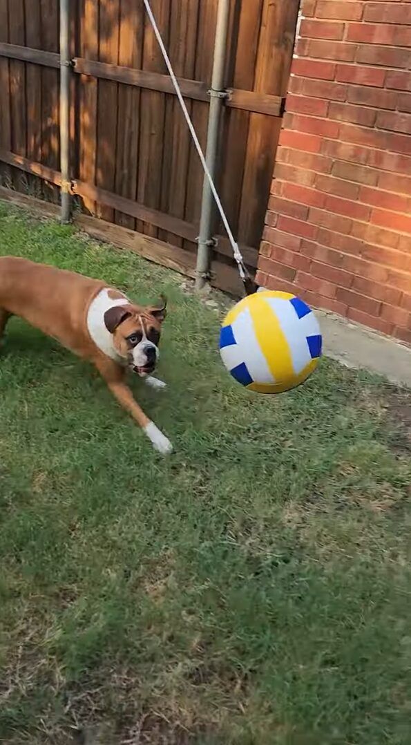 3. 楽しいボール遊び!ボクサー犬はボールのつながったポールの周りを何度もグルグル!!【アメリカ・動画】