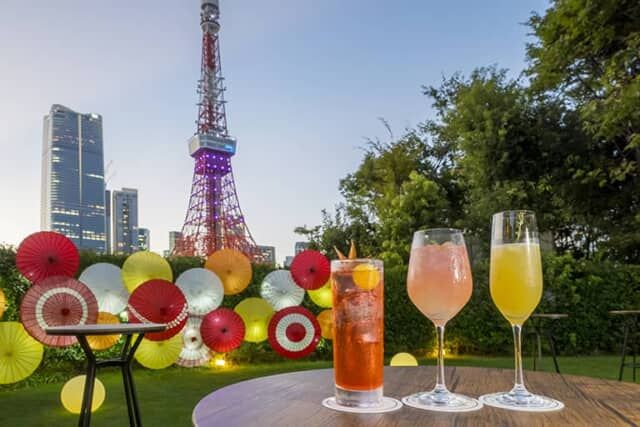 お月見がテーマの「The TOWER BAR -Autumn-(ザ タワー バー – オータム – )」がオープンするのは、2024年10月10日から11月2日までの木・金・土・日・祝日の計16日間。会場になるホテルの神殿「神明」の目の前は芝生の庭園になっていて、夜空に映える東京タワーのライトアップとともにお月見気分を味わえます。