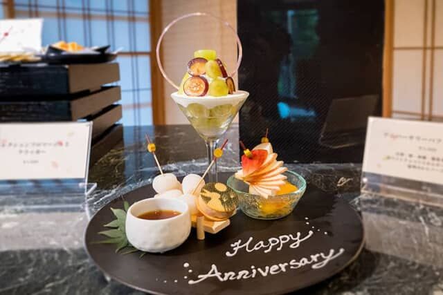 ▲「アニバーサリーパフェプレート」 ¥5,000 ※2日前までの事前予約制