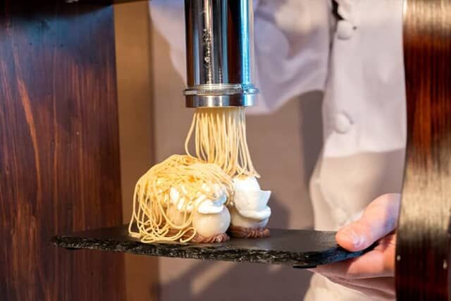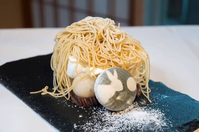 室内席を事前予約して「TOWER BAR おばんざい」や1ドリンクのつくプランには「生絞りモンブラン体験」をできるプランも用意します(¥5,500)。お月見に欠かせないお団子の上に、自分の好みで栗を絞るワクワクする体験です。