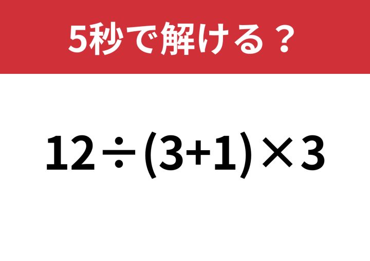 大人なら正解してほしい!「12÷(3+1)×3」5秒で解ける?