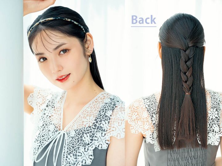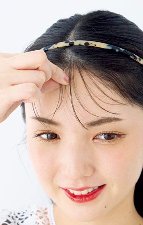 重たく見えがちとはいえ、ツヤのある黒髪は、清楚なレディ感を引き出す武器に! 黒髪を活かすなら、タイトな強調アクセを使ったアレンジがおすすめ。ここではカチューシャを使ったアレンジをご紹介します♪